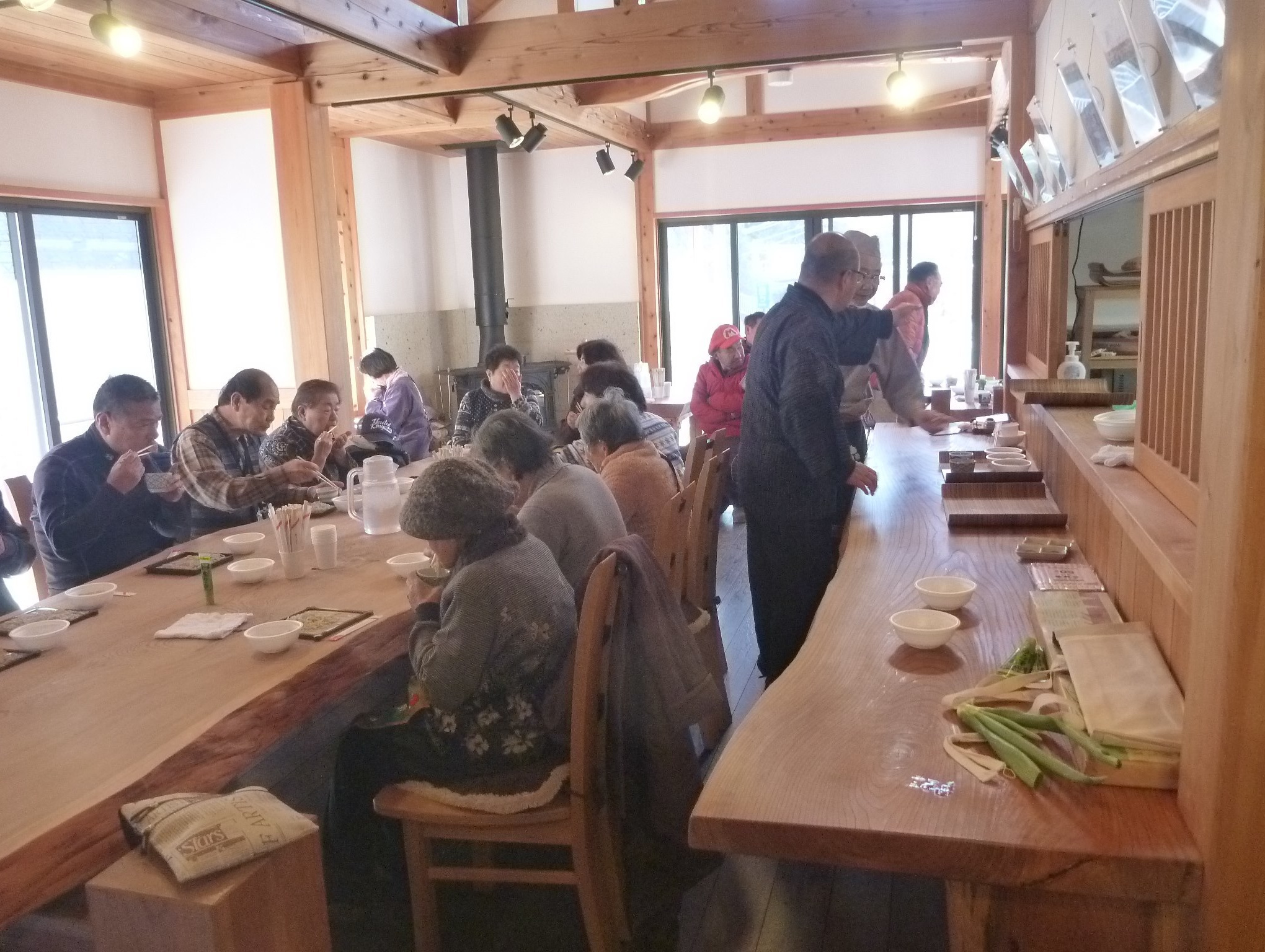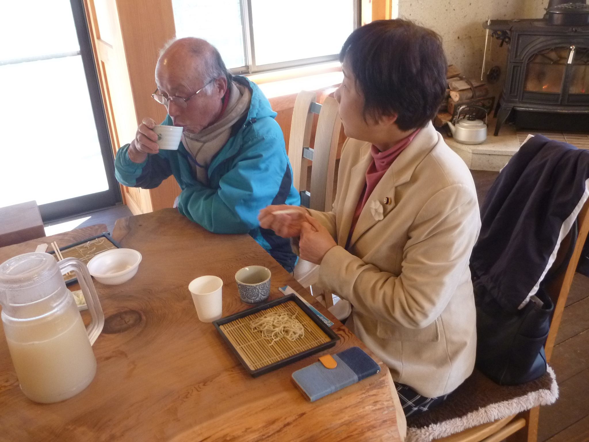 ビックリしたことは年配の方々が「お代わり」を求めたことでした。又自宅で待つおじいさんにも食べさせたいと請われ出前までしてしまいました。津久井農業祭のおり手打ち蕎麦教室に参加戴いた相模原市議野本好美氏も来店下さり青根蕎麦を堪能戴き2度目の蕎麦打ちをなさりました。