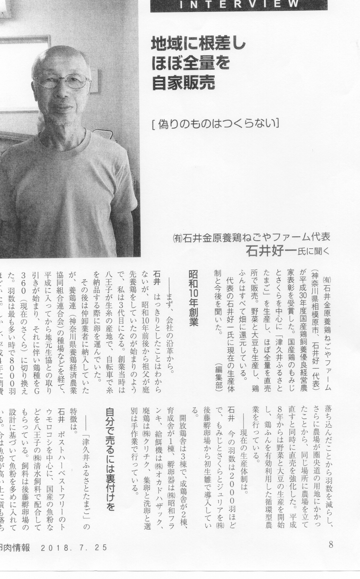 ねごやファーム代表の石井好一は津久井で3代続く養鶏場(有限会社石井金原養鶏)を経営、息子の祐治で4代目になる。