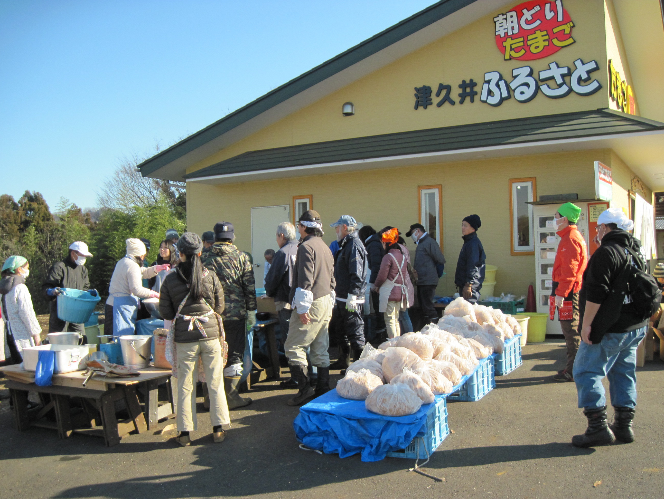 一方、津久井在来大豆の普及に努める「大豆の会」の代表を務める。大豆の会は15年前、津久井地域農業経営士会のメンバー4人を中心に結成。県と協力して、津久井地域内の遊休農地を利用して、公募で津久井在来大豆を育てる体験農園利用者を募集。50人程度で始めた試みは、今では150人近くが従事し、相模原市津久井地区で約9トンもの大豆を生産している。本年度は、地域の小学生770人が津久井在来大豆の栽培と収穫、、味噌作りを体験しました。