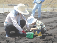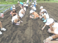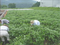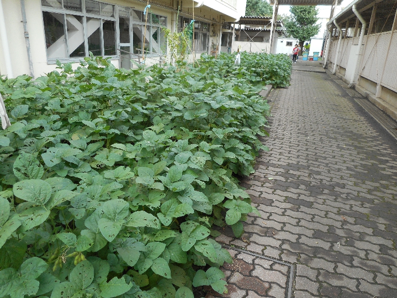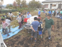 2、小学校の総合学習の時間で津久井在来大豆の栽培から収穫