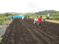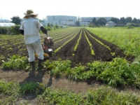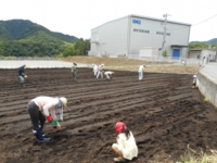2、肥料として当社の発酵鶏糞の有機肥料を散布