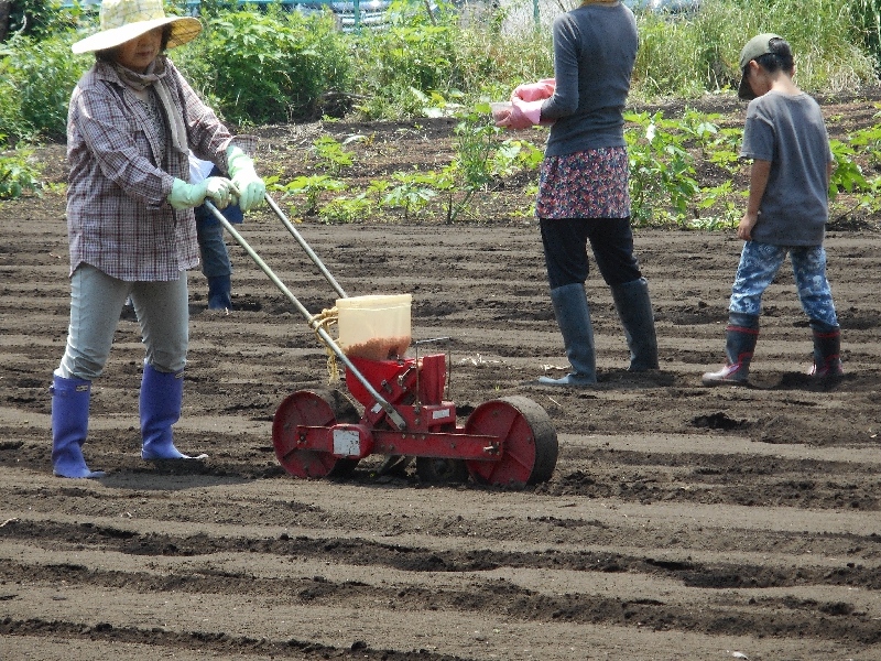 4、播種の畝幅は、80cmから60cm。株間は約12cm。