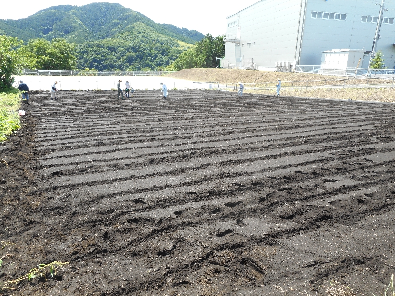 2、肥料として当社の発酵鶏糞の有機肥料を散布