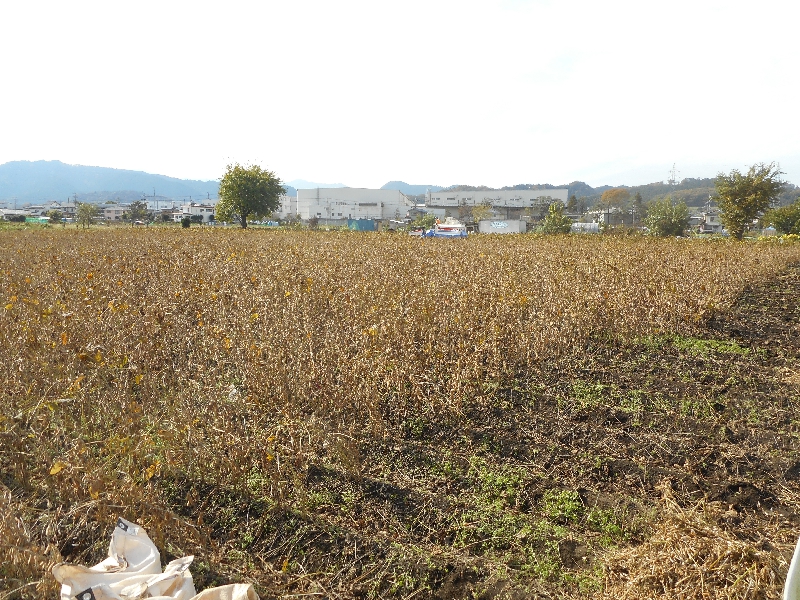 4、人手の他にコンバインを使用し、大豆を収穫する