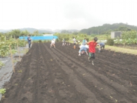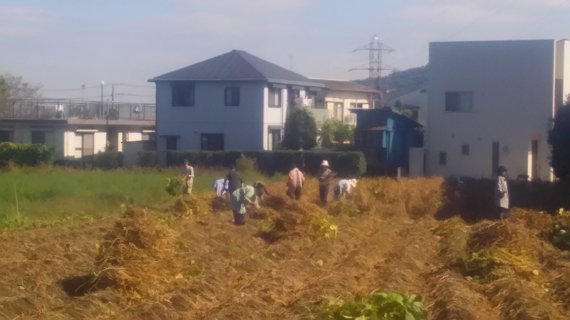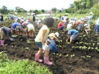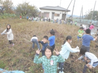 2、小学校の総合学習の時間で津久井在来大豆の栽培から収穫