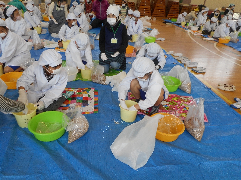 4、平成27年度は、生徒数合計770人が体験しました(一人 3.5kgを作り家庭に持ち帰りました)